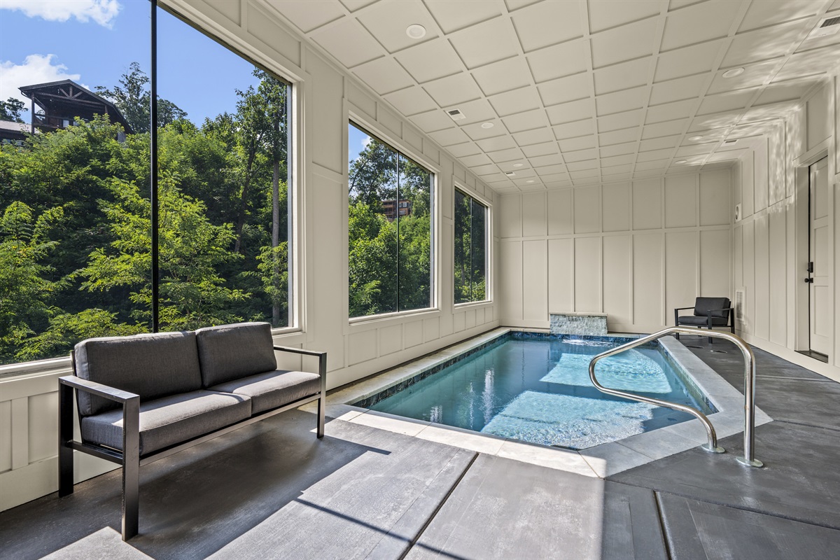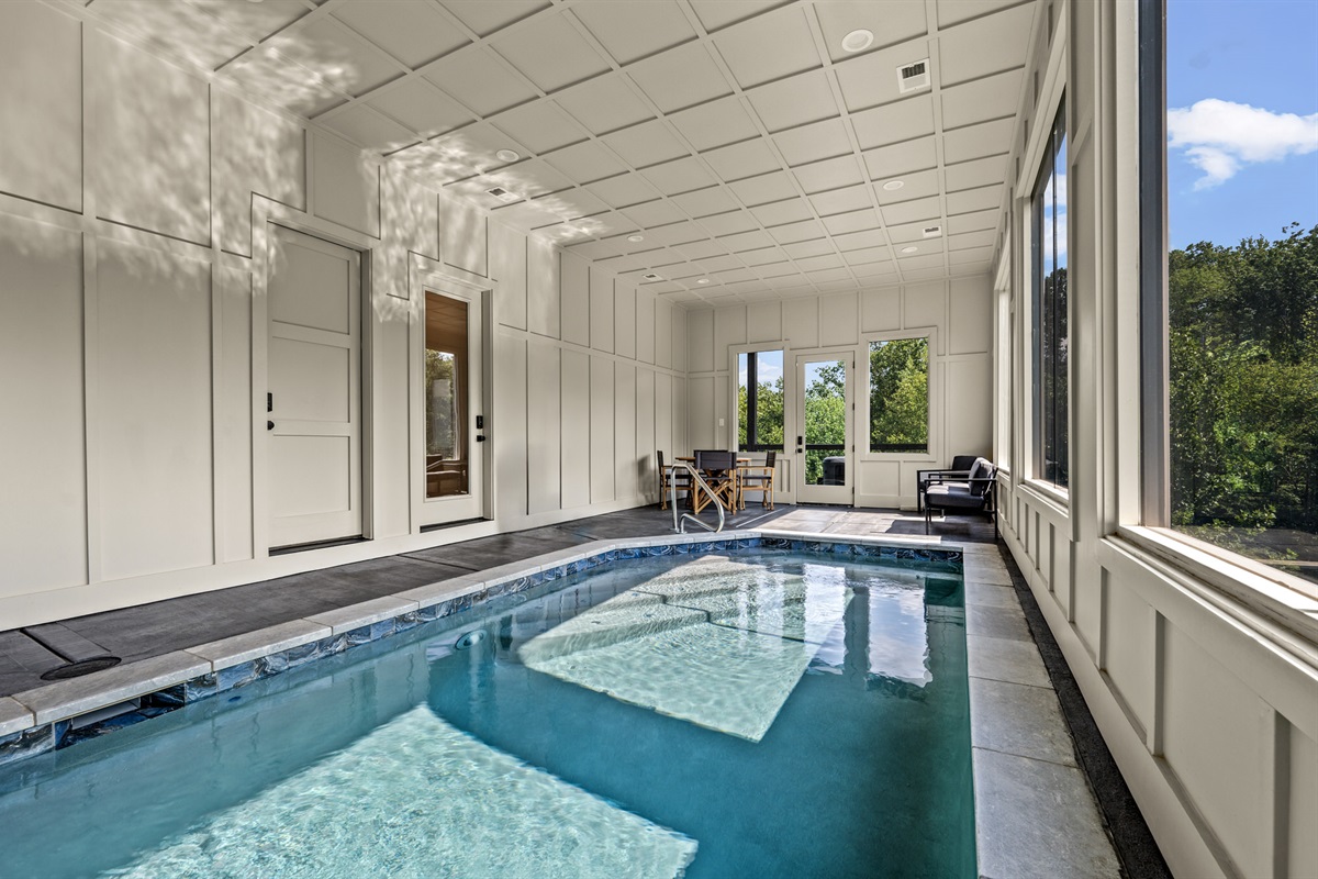 -Indoor Heated Pool (19’ x 10’): Swim year-round in comfort—pool water maintained at 82-84°F and air temp at 80-82°F.