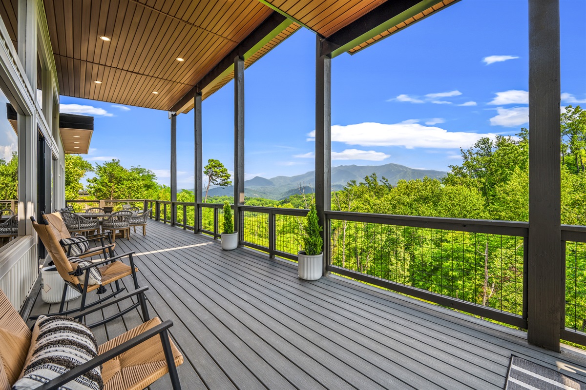 -Incredible Views: Enjoy panoramic mountain scenery from two levels of outdoor decks.