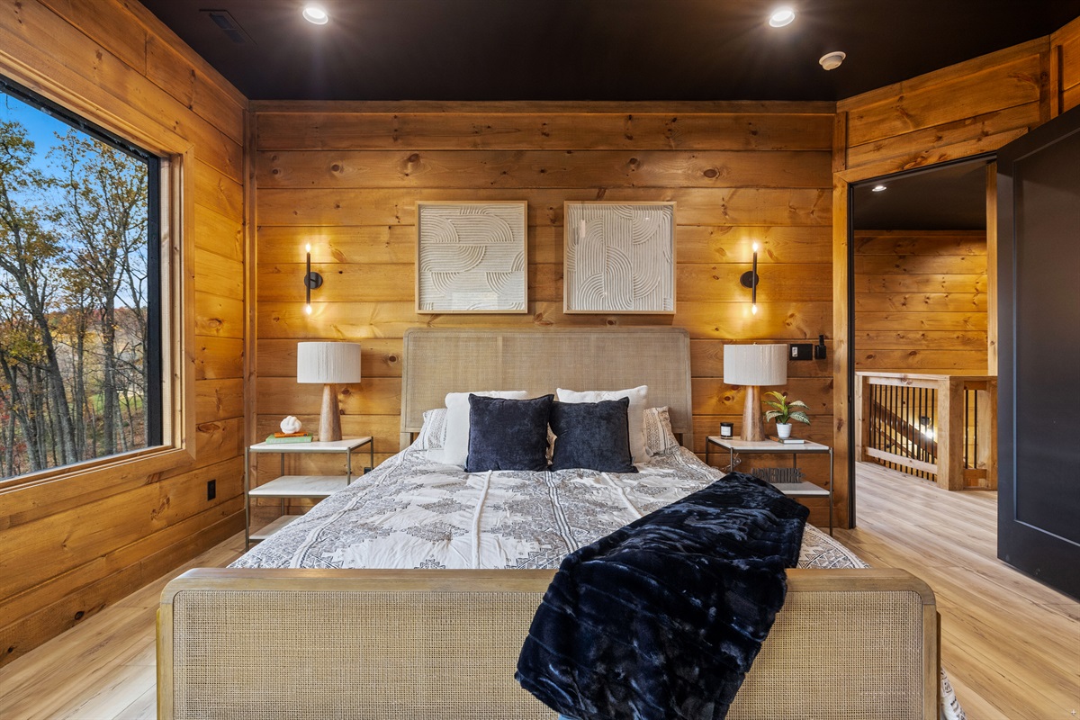 -2 large bedrooms: 1 King Bedroom with ensuite bathroom & 1 Bunk Room: Two Queen Beds on bottom & Two Twins on top with bathroom in the hallway