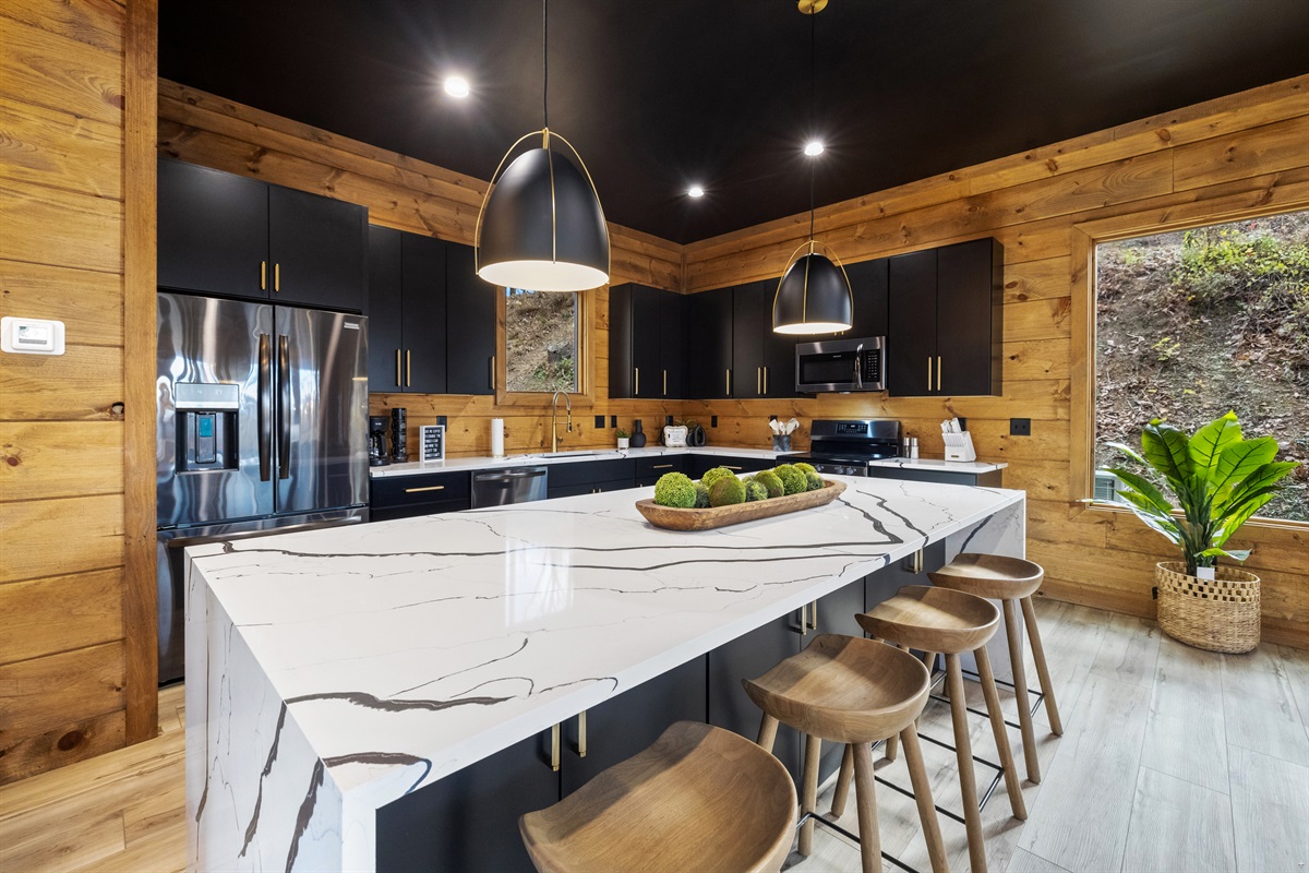 -Fully Equipped Kitchen: High-end kitchen with stainless steel appliances and bar seating
