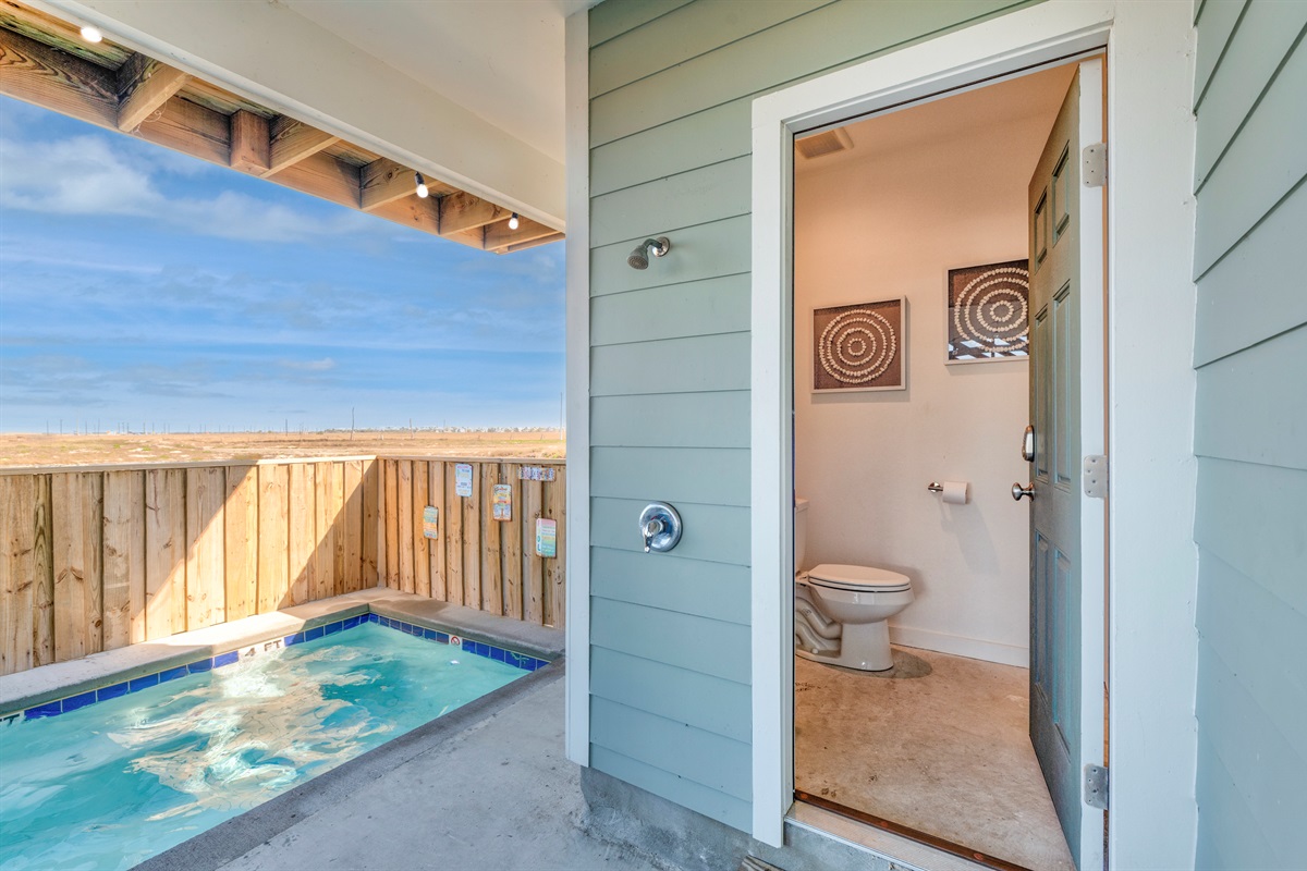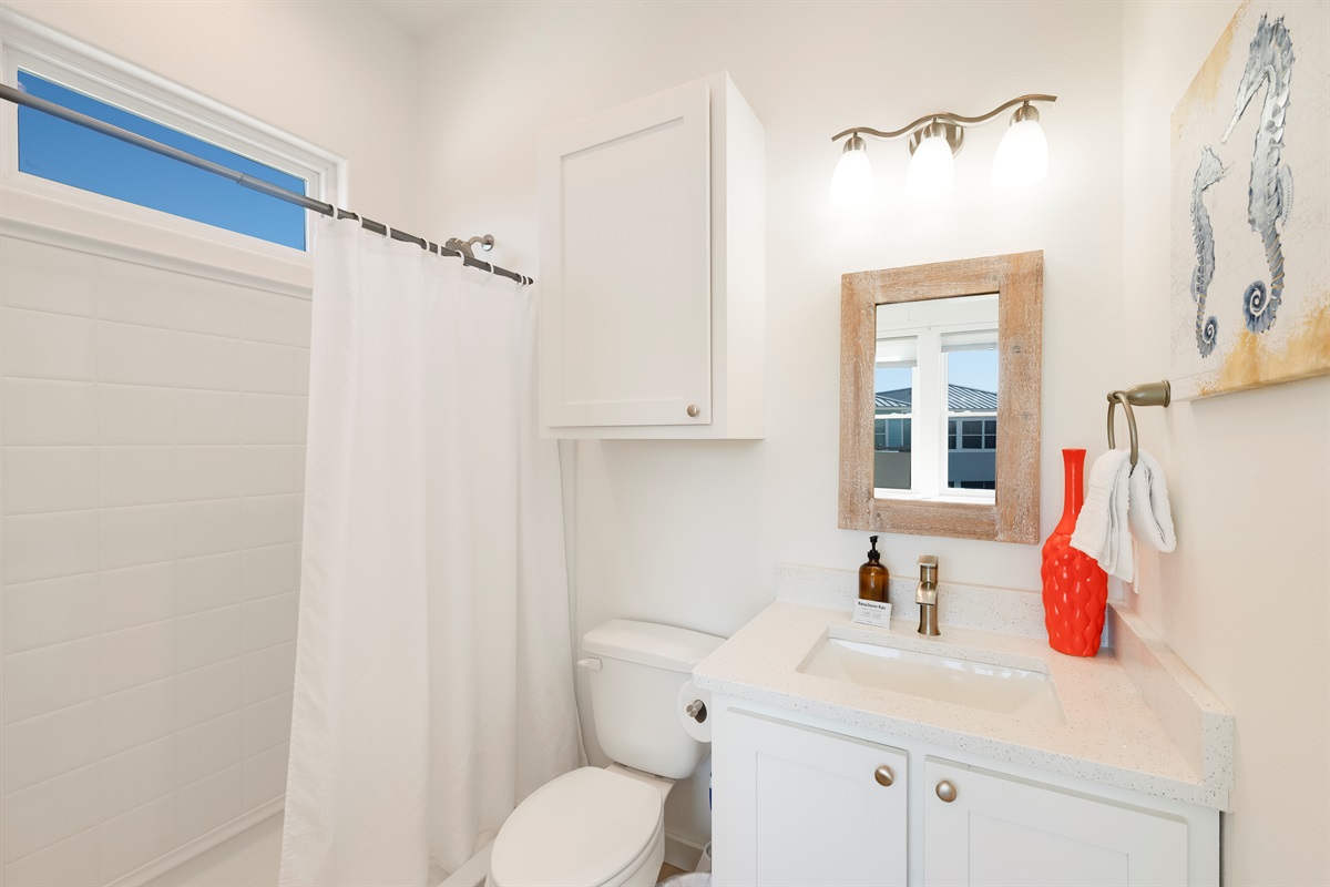 🌞Three full bathrooms in the house and a half bath next to the pool