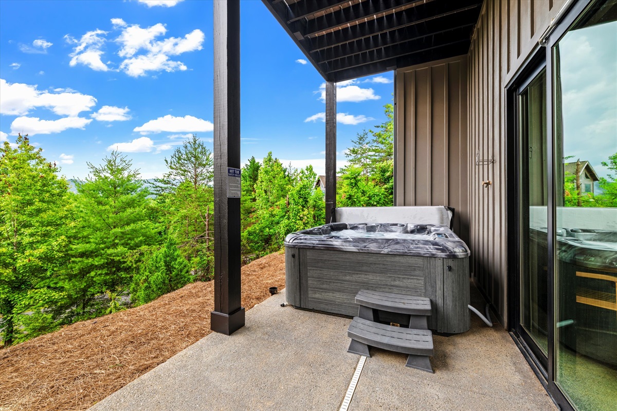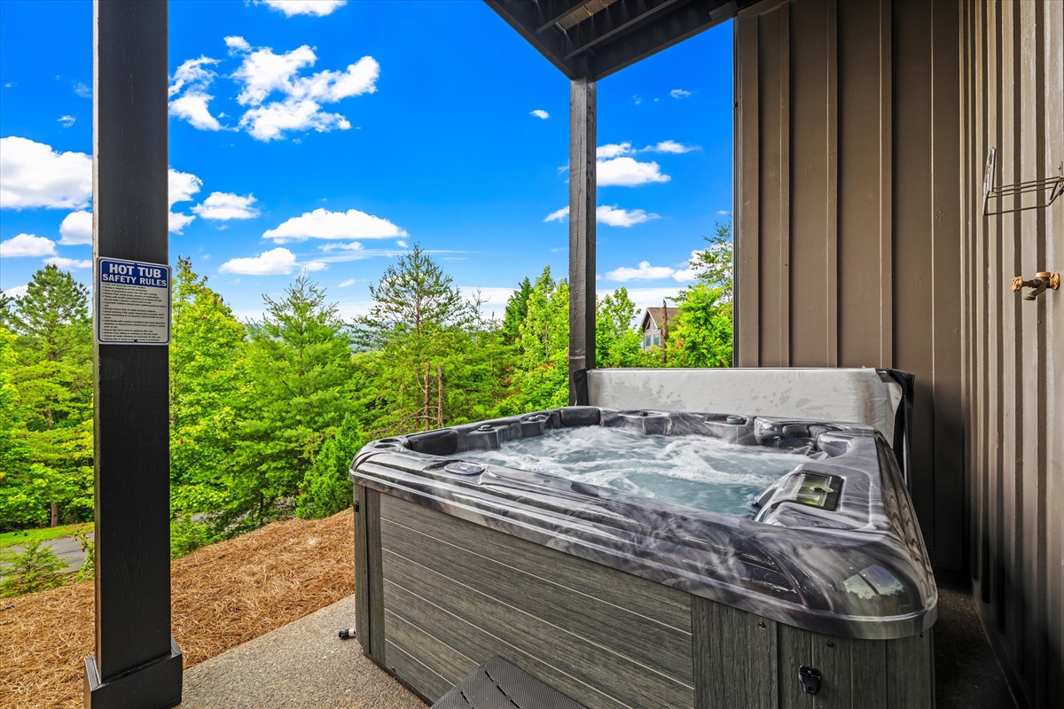 -Hot Tub: Relax in the hot tub while taking in the mountain scenery.