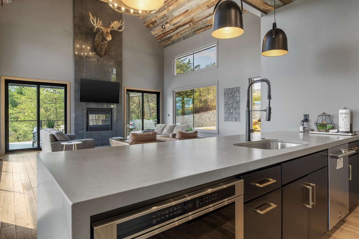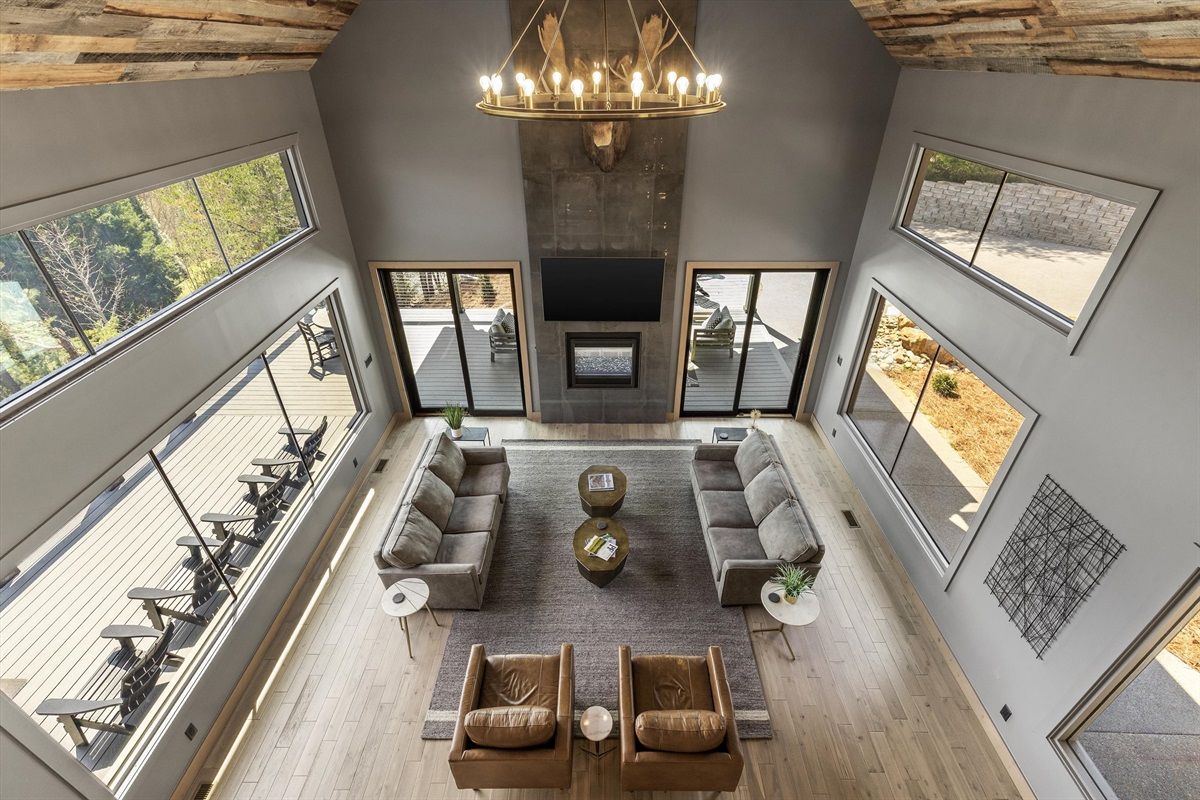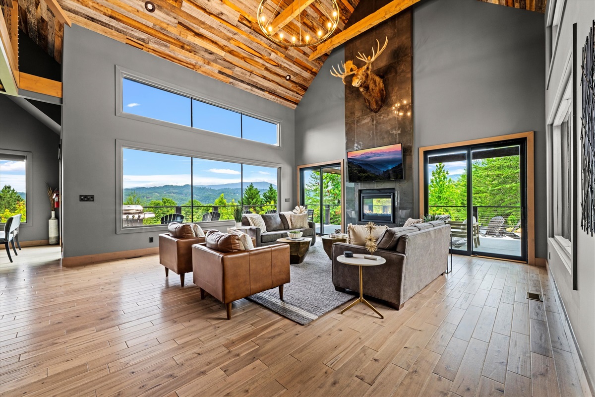 -Great Room: Spacious area with luxury furnishings, a cozy fireplace, and stunning views.